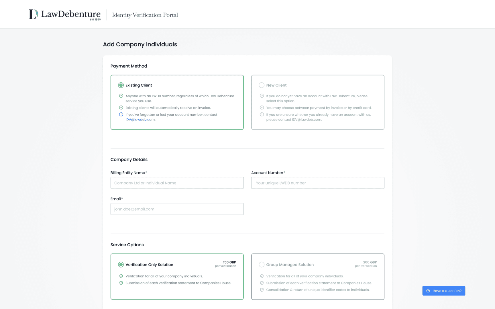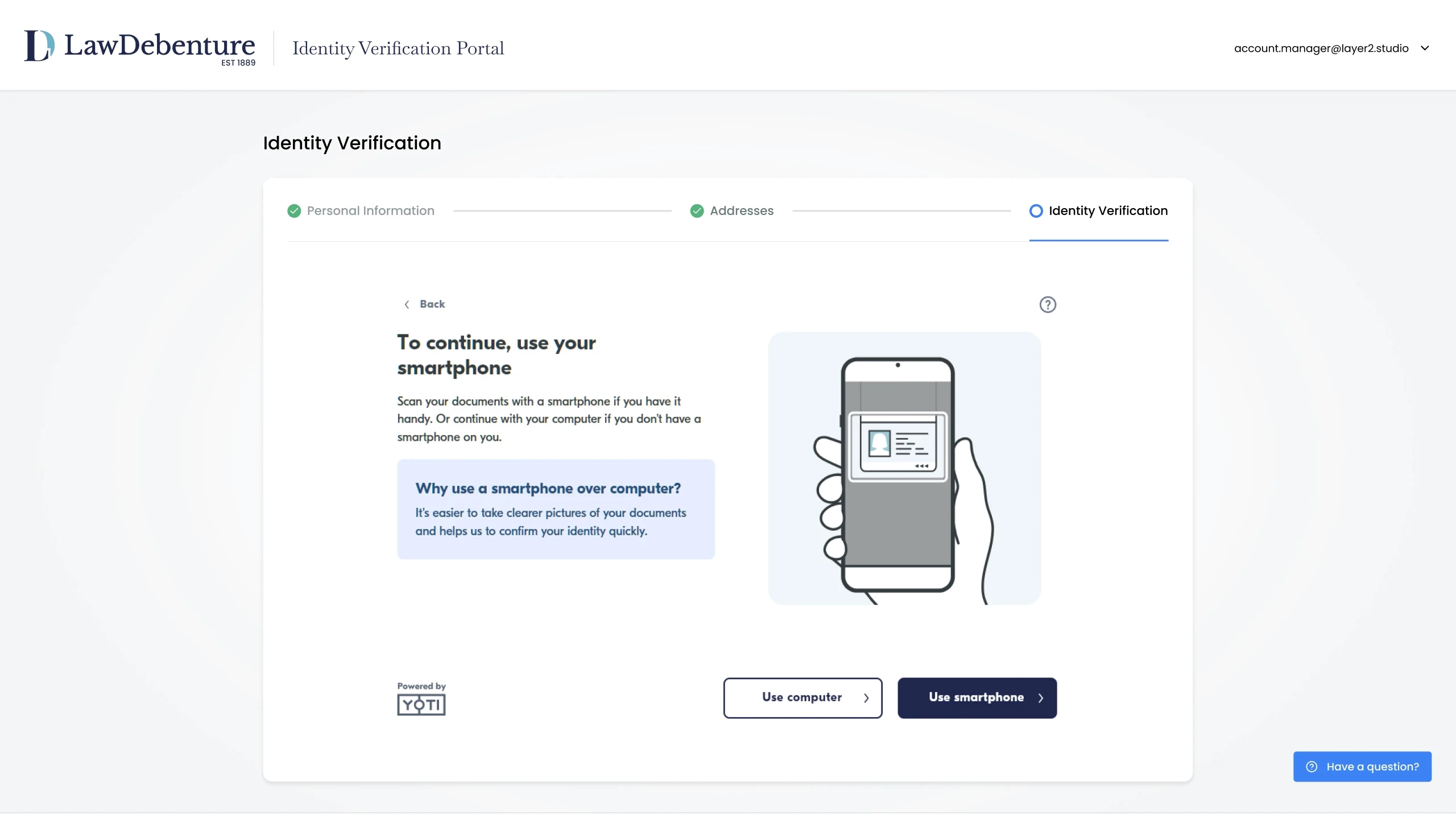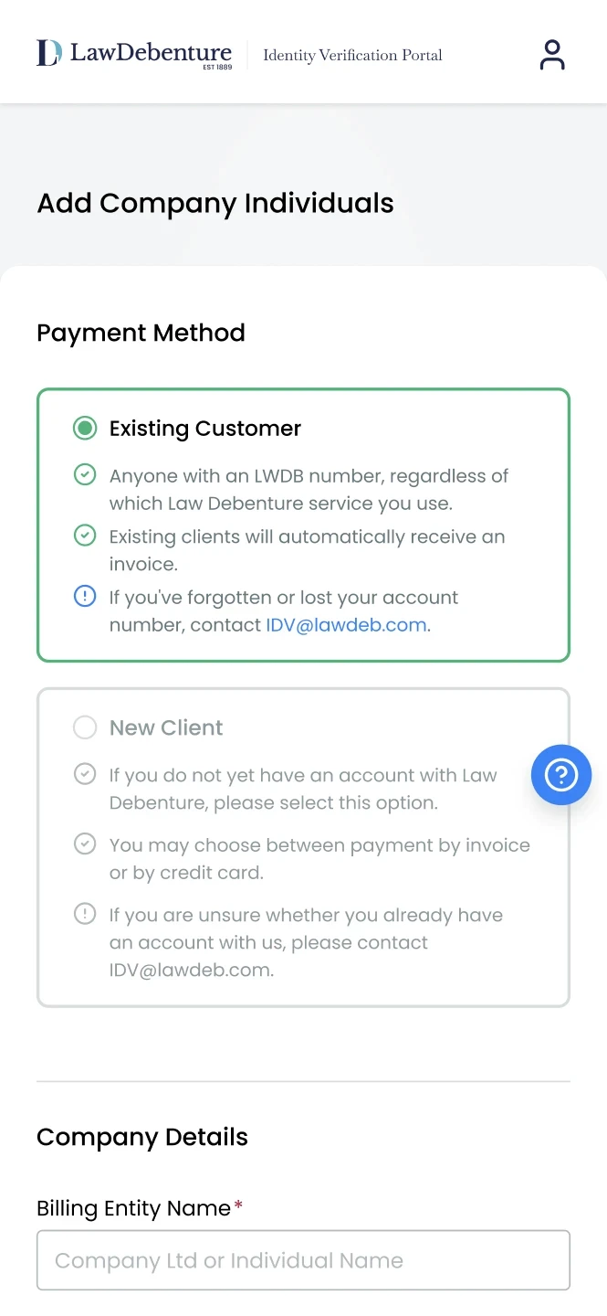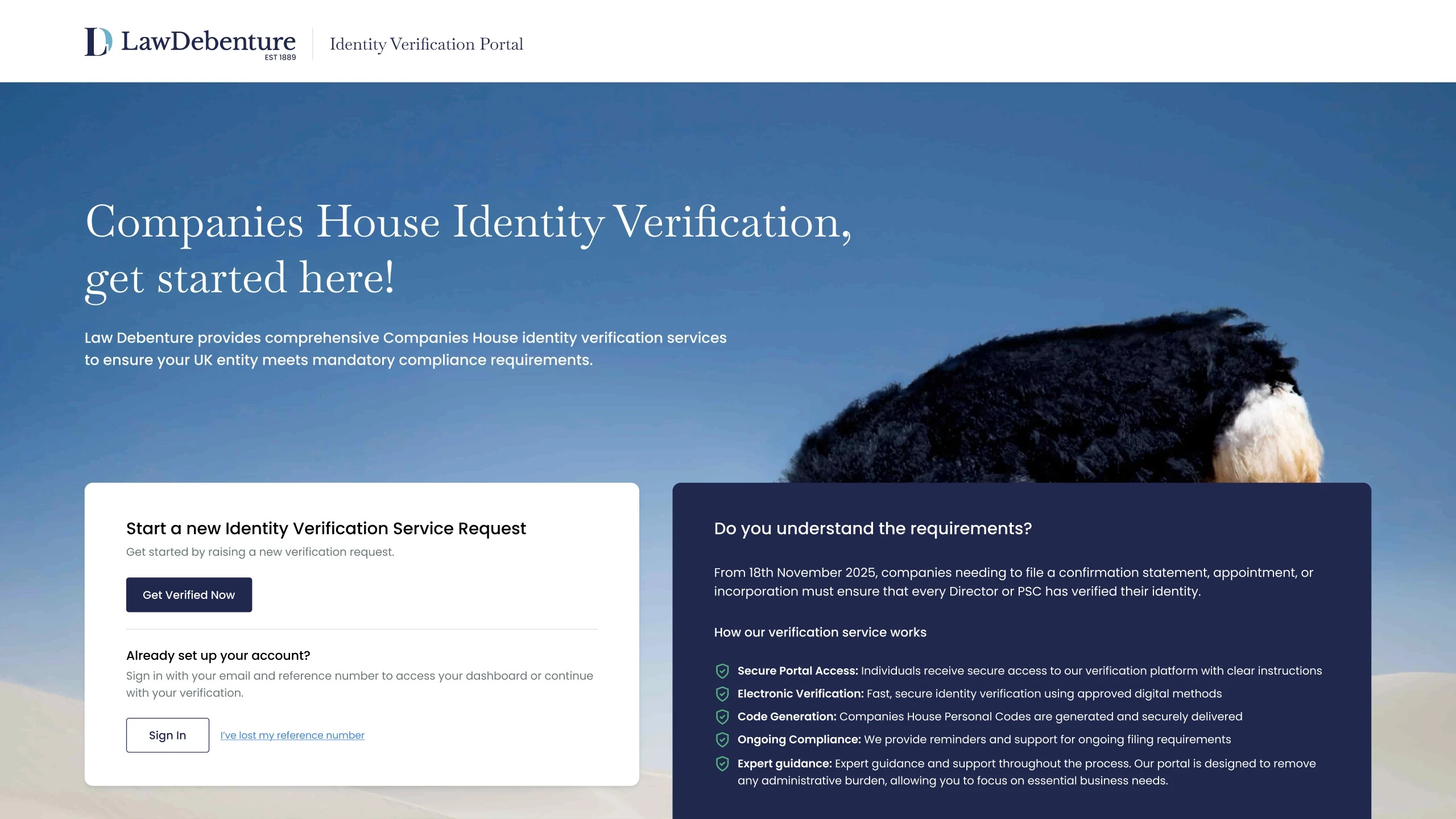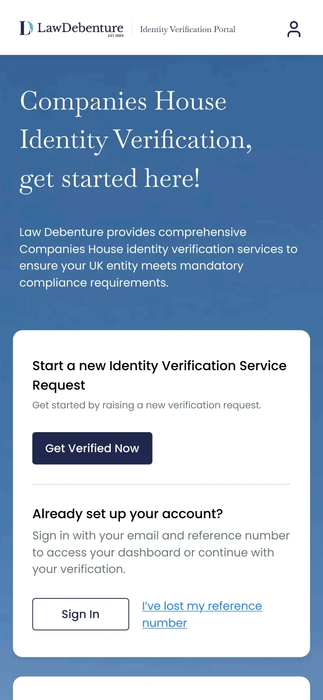 We delivered a full experience optimisation for the Director Identification portal developed by Law Debenture, supporting its identity verification service for directors and PSCs. The engagement covered the complete end-to-end user journey, from desktop to mobile, with fully interactive prototypes and close collaboration with developers to ensure the final implementation delivered a seamless, intuitive compliance experience.